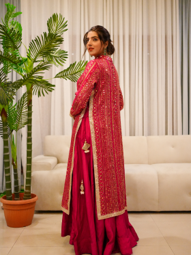 Introducing our latest collection: Plain Red Silk Pashwas with Beautiful Machine Embroidery. Elevate your elegance with our exquisite designs, perfect for any occasion. Shop now and make a statement!”