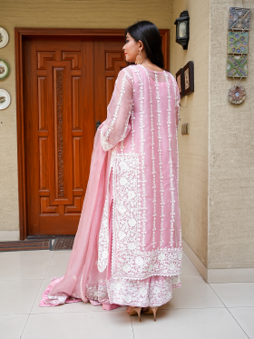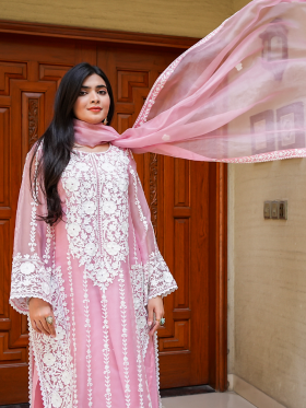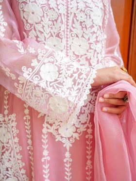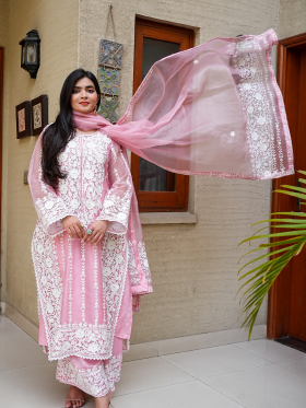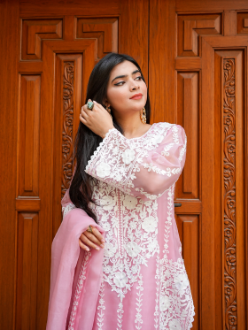 Introducing our premium organza dress, a masterpiece of elegance and sophistication. Crafted with meticulous attention to detail, this three-piece suit features exquisite machine embroidery adorning the front and back, elevating the dress to a new level of allure. The delicate embroidery lends a unique and enchanting touch, ensuring you stand out with every step. Paired with a premium organza dupatta, embellished with matching machine work embroidery along the borders, this ensemble is the epitome of timeless beauty. Embrace luxury and style with our captivating organza dress, perfect for making a statement at any special occasion