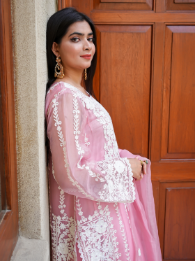 Dress Detail : Pure Organza Dress With machine embroidery on neckiline front and back sleeves along with embroided duppata