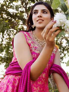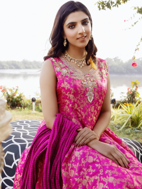 Dress Detail : Beautiful Pink Pashwas With neckline embroidery on front and back .